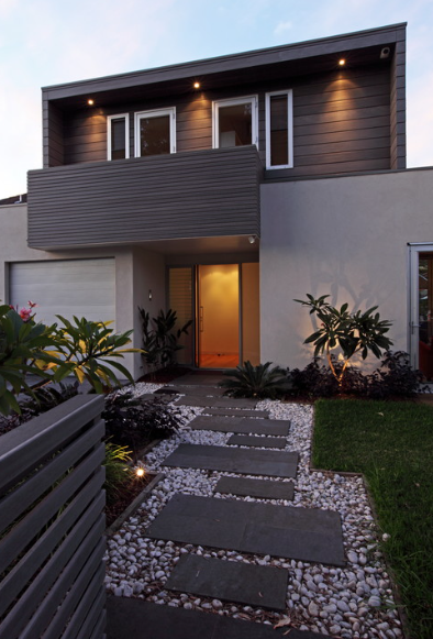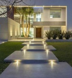 This custom-designed entryway, built by our expert team, begins with elegant, wood-toned rectangular stones, each one surrounded by fine white pebbles for a clean and natural contrast. Between each large stone, smaller decorative stones are carefully placed to create smooth transitions and visual harmony. As the pathway progresses, it leads into a beautifully crafted multi-level floating entrance, featuring subtle elevation changes and integrated LED lighting. The final result is a stunning combination of nature, design, and modern detail — a true statement of craftsmanship, precision, and creativity from our team.