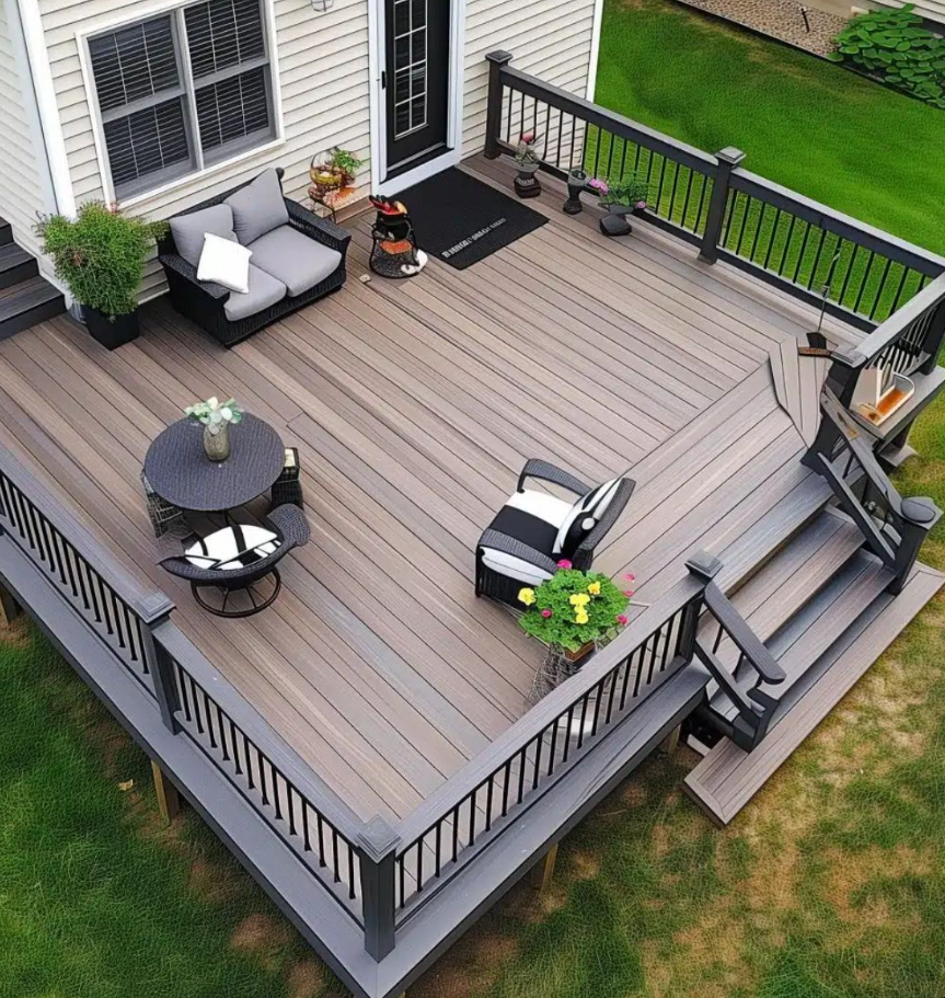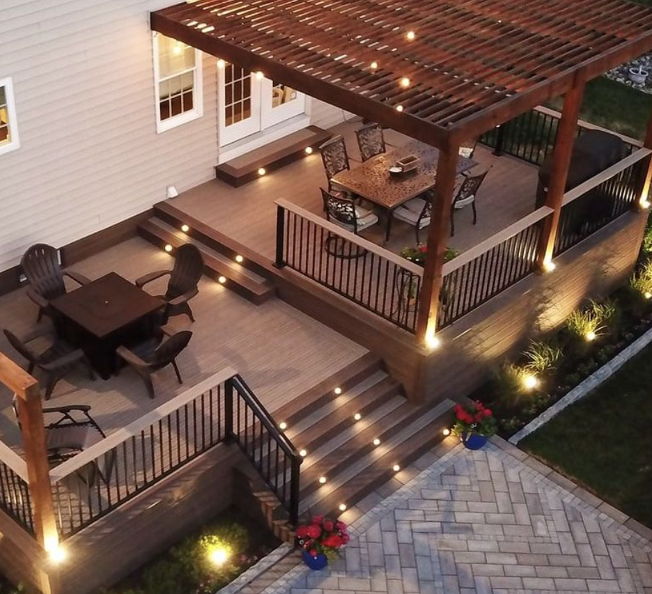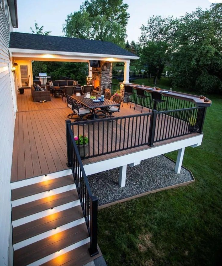 This beautiful two-level brown deck adds warmth, elegance, and functionality to any outdoor space. The rich coffee-colored finish gives it a natural and inviting look, perfectly complementing the surrounding landscape. Designed with two spacious levels, it offers the ideal layout for relaxing, dining, and entertaining. Built with high-quality materials and attention to detail, this deck combines style and durability — a stunning upgrade that enhances the comfort and value of your home.